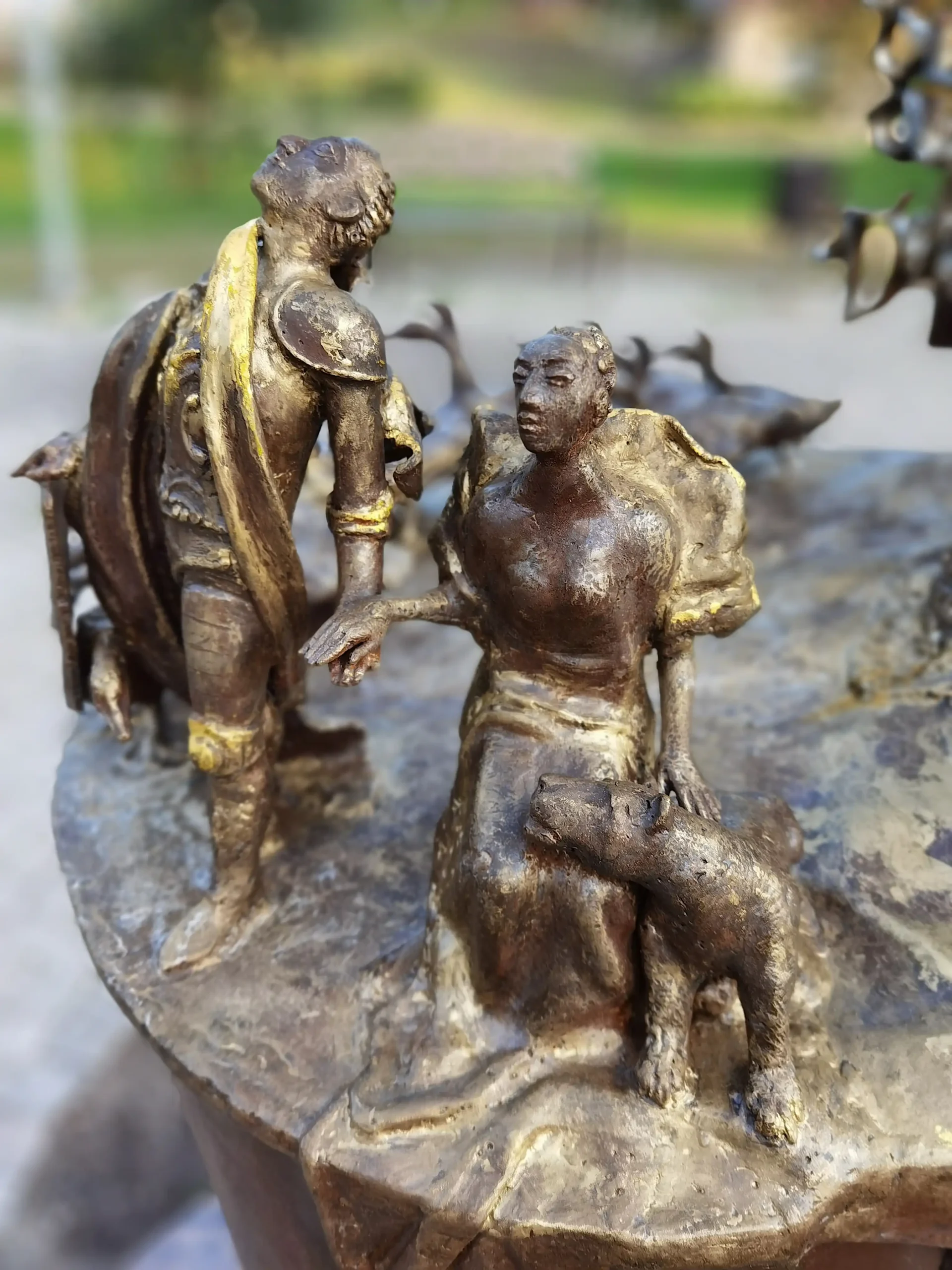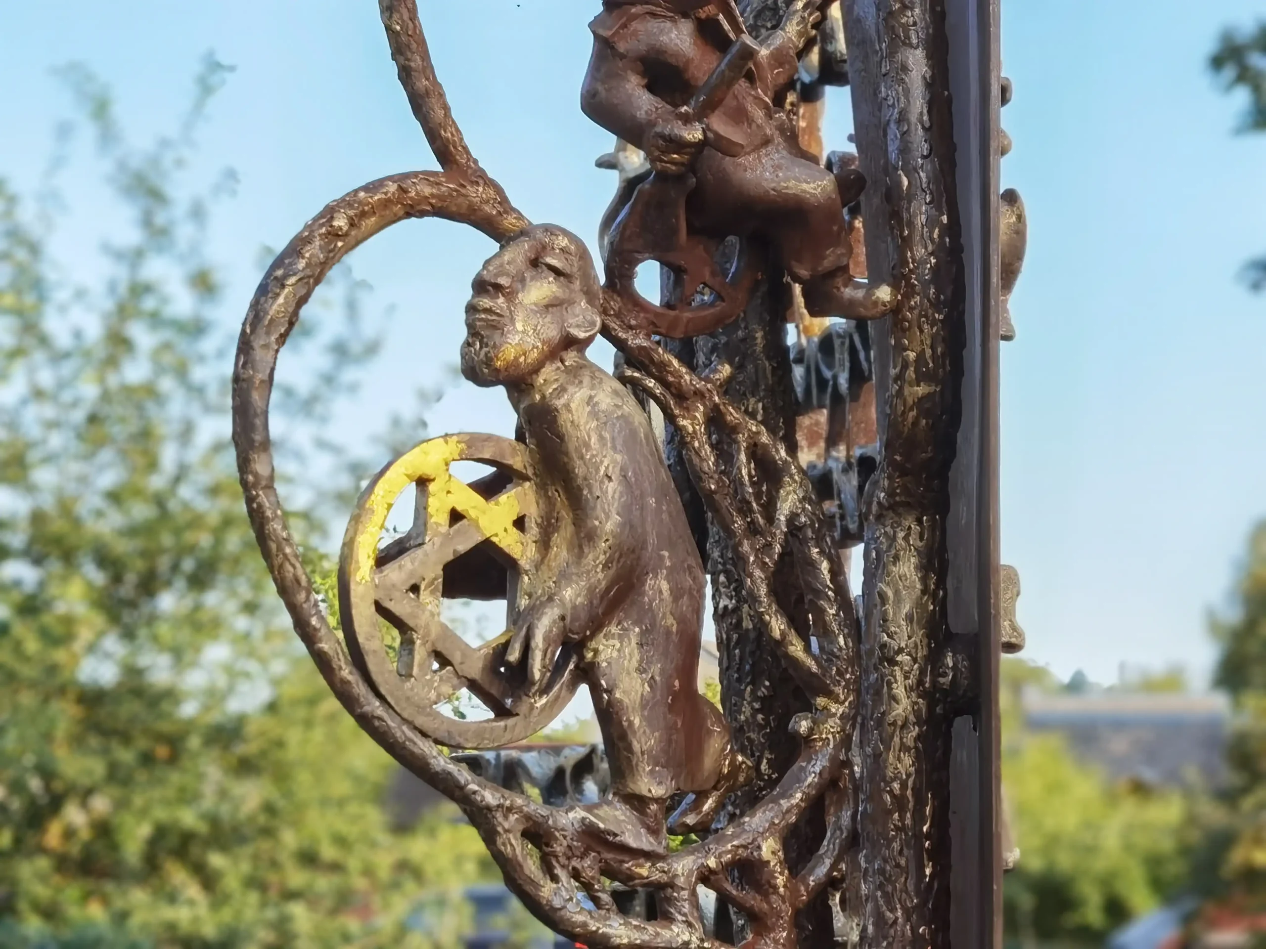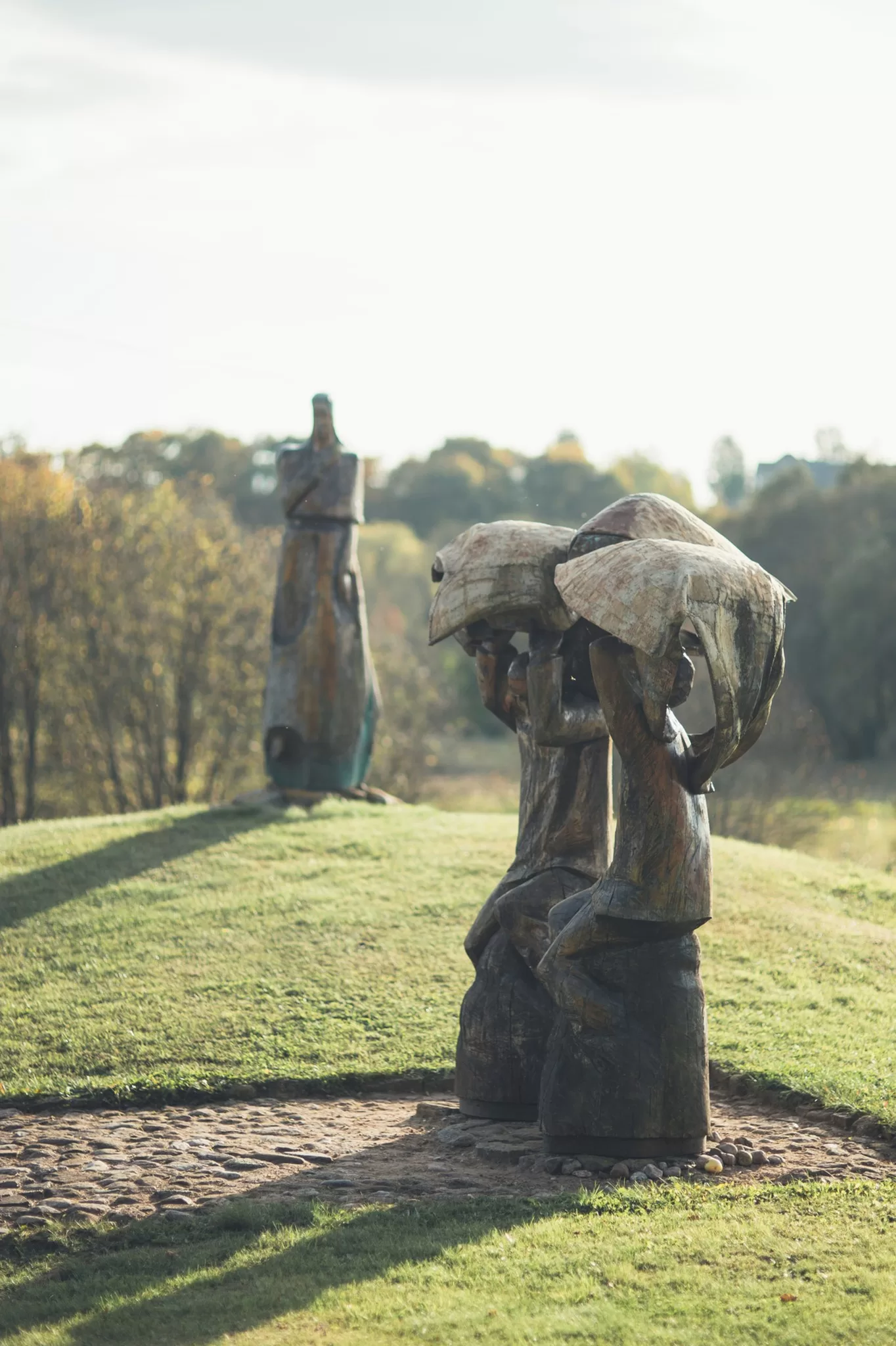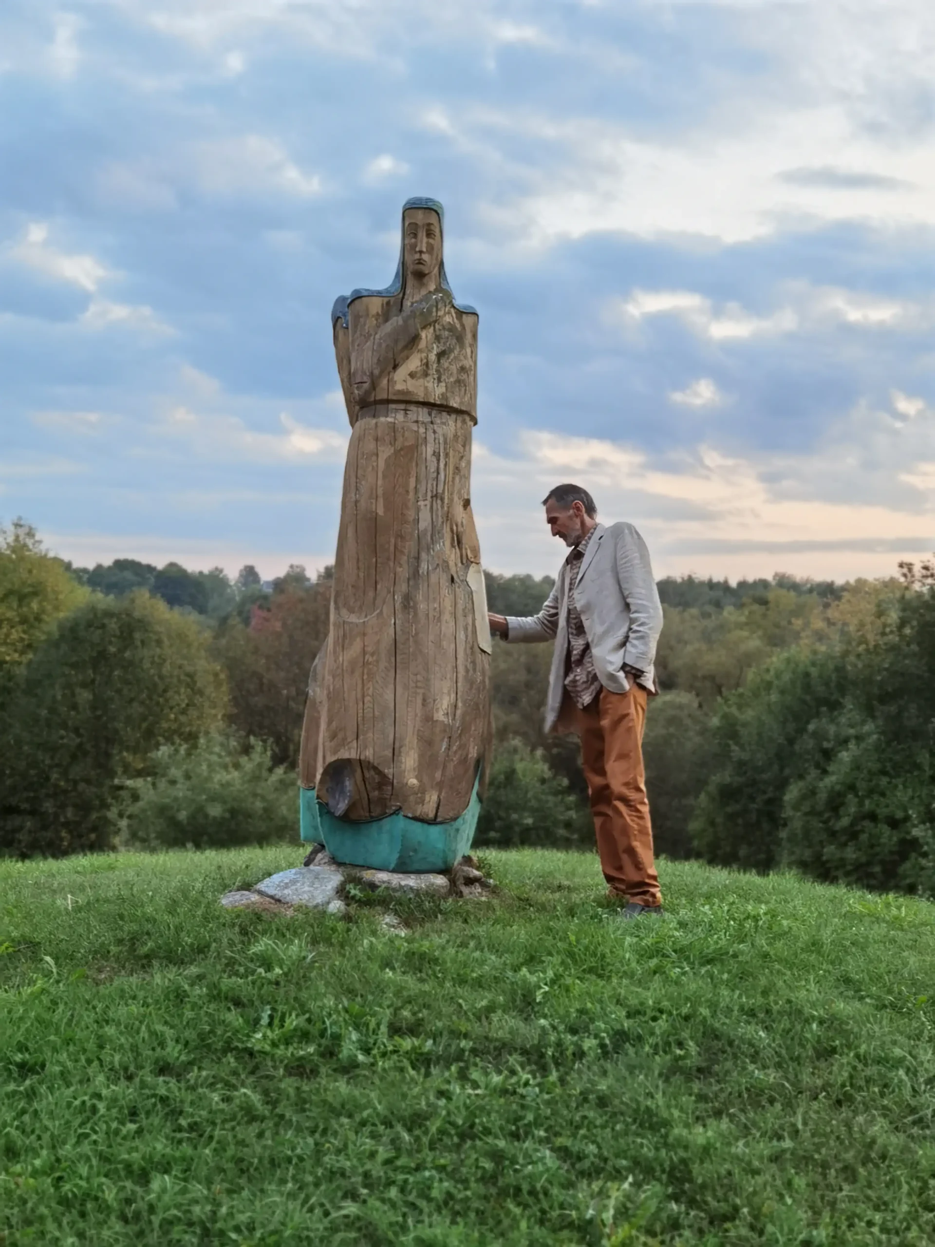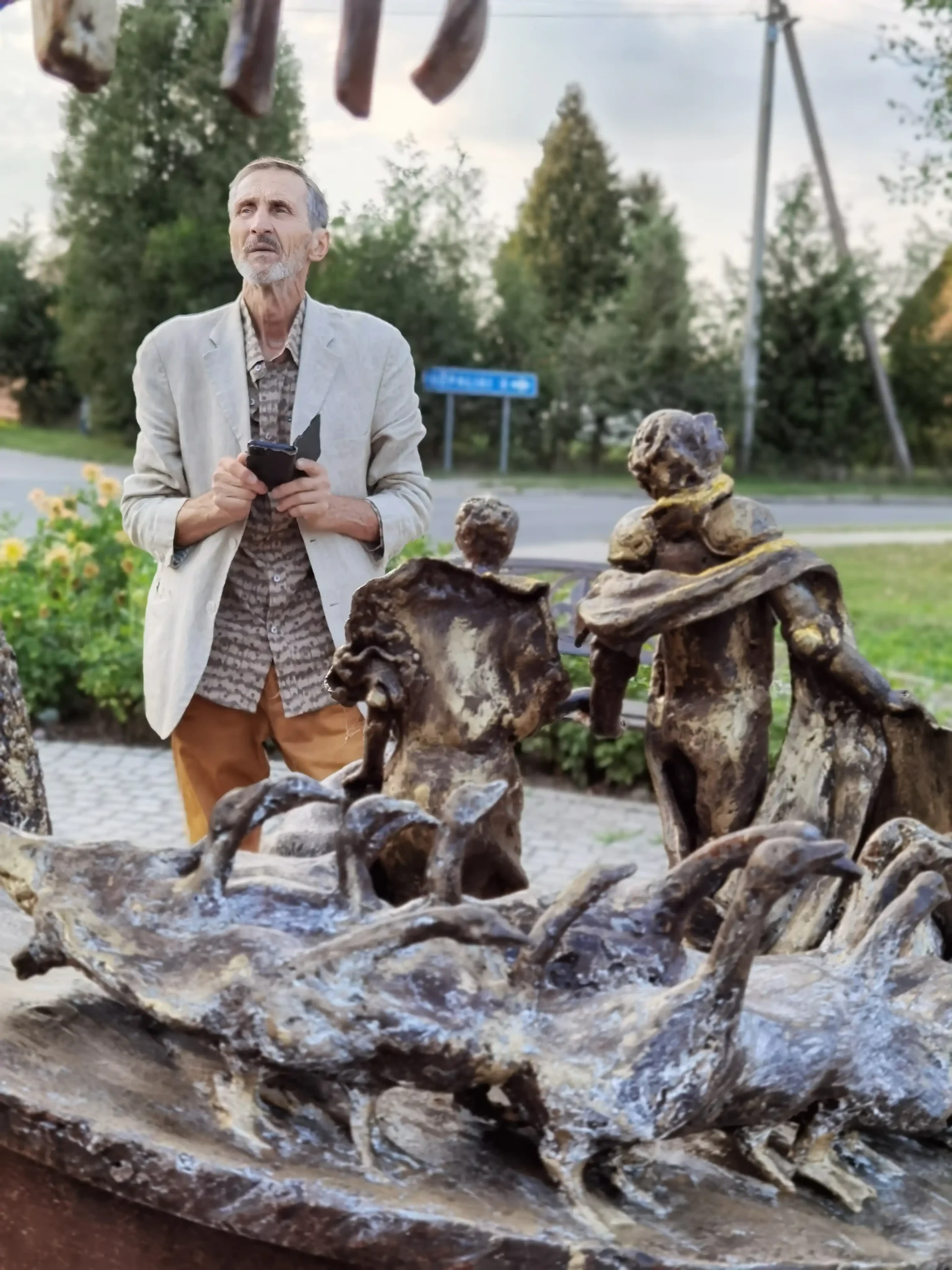 Netoliese savo gimtųjų namų, ant vaizdingo Vyžuonos upės skardžio, 2000 m. pastačiau medžio-metalo skulptūrų ansamblį, skirtą dviejų talentingų kraštiečių rašytojų – literatūros kritiko Antano Masionio ir prozininko Broniaus Radzevičiaus, įamžinimui. Taip užgimė Rašytojų kalnelio vietovardis. Netoli jų stovinčio medinio angelo sparnai gobia trapią būtį ir tėviškės peizažą. Naujausia mano skulptūra “Saulė” sveikina visus miestelio centre. Ji skirta mano krašto žmonių ir čia ilgai viešpatavusios Radvilų šeimos atminimui.